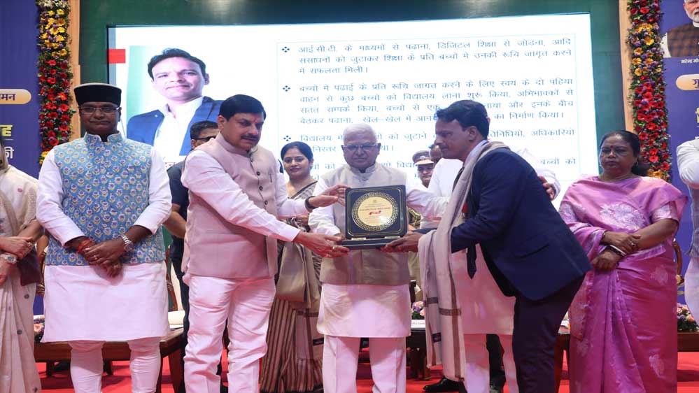 राज्यपाल मंगुभाई पटेल और मुख्यमंत्री डॉ. मोहन यादव ने शिक्षक दिवस पर उत्कृष्ट कार्य करने वाले शिक्षकों को सम्मानित किया। साथ ही शासकीय विद्यालयों में कक्षा एक से 8 तक के 55 लाख विद्यार्थियों के खातों में शाला गणवेश की 330 करोड़ की राशि अंतरित की। आर.सी.व्ही.पी नरोन्हा प्रशासन एवं प्रबंधकीय अकादमी भोपाल में आयोजित राज्य स्तरीय शिक्षक सम्मान समारोह में मुख्यमंत्री डॉ. यादव ने शैक्षणिक संवर्ग के सहायक शिक्षक, उच्च श्रेणी तथा नवीन शैक्षणिक संवर्ग के प्राथमिक शिक्षक एवं माध्यमिक शिक्षकों को क्रमोन्नत योजना प्रभावशील होने से चतुर्थ समयमान वेतनमान के लाभ के समरूप चतुर्थ क्रमोन्नत वेतनमान का लाभ दिये जाने की घोषणा की।