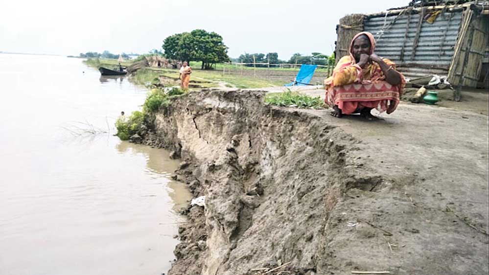 मौके पर मौजूद स्थानीय निवासियों ने बताया कि गंगा लगातार तटबंध को अपने अंदर समाती जा रही है, जिससे लोगों में दहशत बढ़ रही है. तटबंध को बचाने के लिए रात भर काम चल रहा है. बड़े-बड़े पेड़ और बालू से भरे बोरे डालकर कटान रोकने की कोशिश की जा रही है.