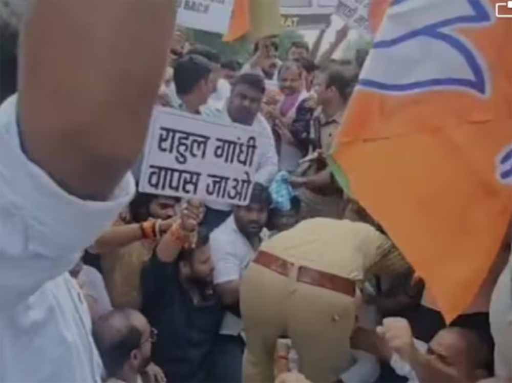 सांसद राहुल गांधी बुधवार को दिवसीय दौरे पर रायबरेली पहुंचे। लखनऊ से रायबरेली आते समय हरचंदपुर क्षेत्र के गुलुपुर के पास उनका विरोध किया गया। प्रदेश सरकार के मंत्री दिनेश प्रताप सिंह और कार्यकर्ता लखनऊ प्रयागराज हाईवे पर बैठ गए। राहुल गांधी वापस जाओ के नारे लगाए। करीब 20 मिनट तक राहुल गांधी का काफिला रुका रहा। इस दौरान कार्यकर्ता उत्तेजित हो गए। हालांकि मंत्री ने उन्हें समझाया तब जाकर समर्थक शांत हुए। मंत्री दिनेश सिंह ने कहा कि राहुल गांधी को माफी मांगनी चाहिए। बिहार में उनकी मौजूदगी में प्रधानमंत्री की मां को गाली दी गई। यह किसी तरह से समाज के लिए ठीक नहीं है।
