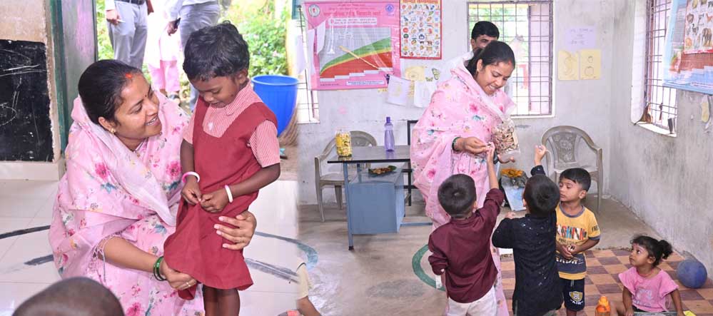मंत्री राजवाड़े ने जशपुर जिले के रूपसेरा और लोदाम आंगनबाड़ी केंद्रों का औचक निरीक्षण