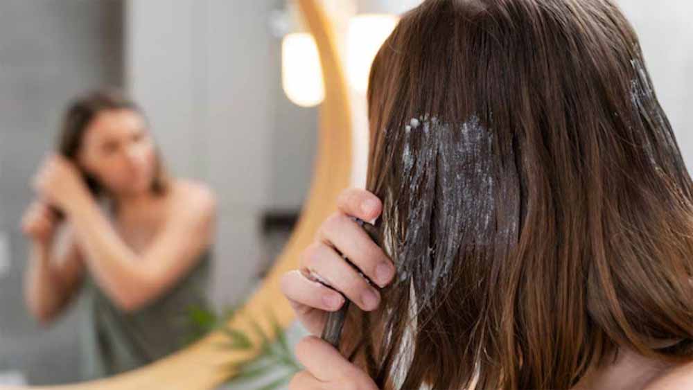 फायदे: यह मास्क स्कैल्प को डिटॉक्स करता है, बालों को चिपचिपेपन से बचाता है और उन्हें सॉफ्ट और हेल्दी बनाता है।