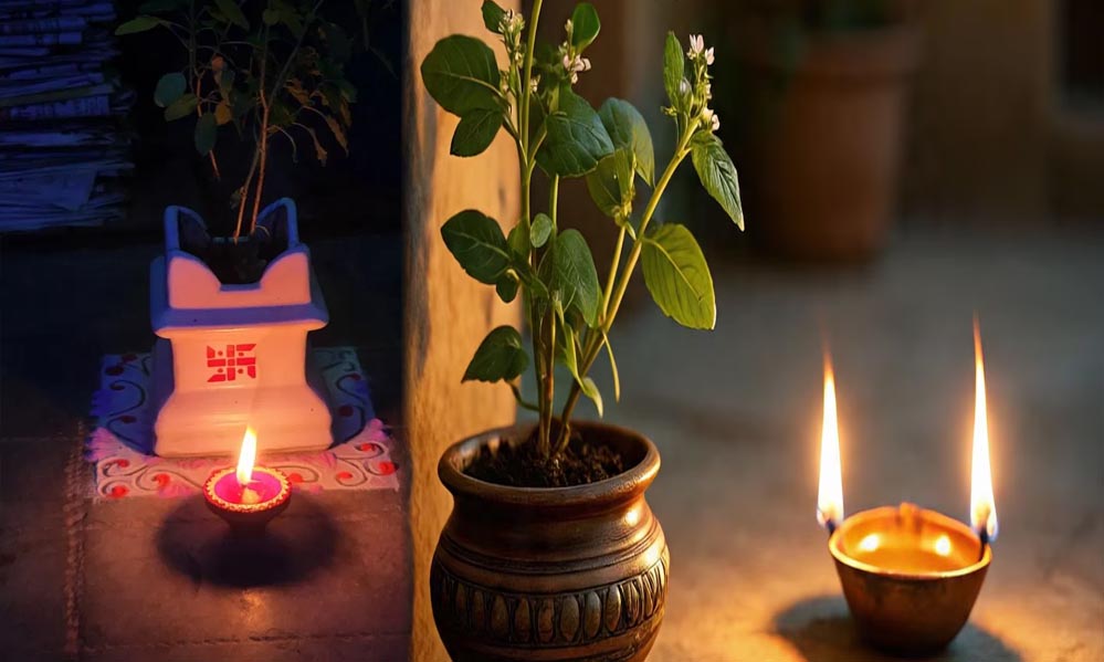 शुभ समय और लाभ: शाम को तुलसी के पास दीया जलाने के फायदे