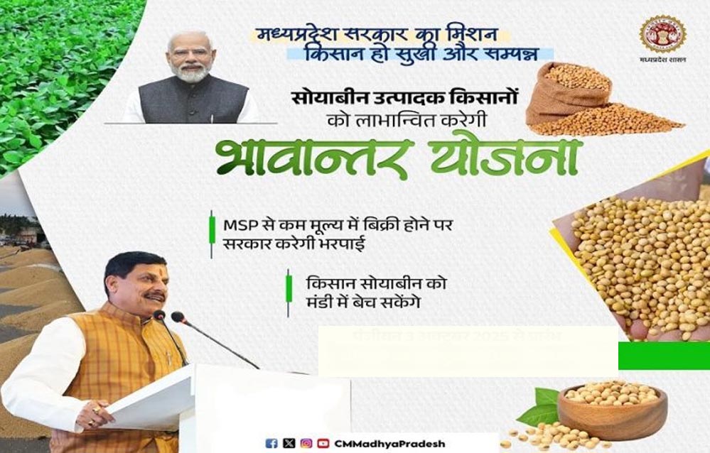 भावांतर योजना 2025 अंतर्गत सोयाबीन विक्रेता किसानों के लिए आज 11 नवंबर को 4056 रुपए प्रति क्विंटल का मॉडल रेट जारी किया है। यह मॉडल रेट उन किसानों के लिए है, जिन्होंने अपनी सोयाबीन की उपज मंडी प्रांगणों में विक्रय की है। इस मॉडल रेट के आधार पर ही भावांतर की राशि की गणना की जाएगी। मॉडल रेट में लगातार वृद्धि जारी है। पहला मॉडल रेट 7 नवंबर को 4020 रुपए प्रति क्विंटल जारी किया गया था।