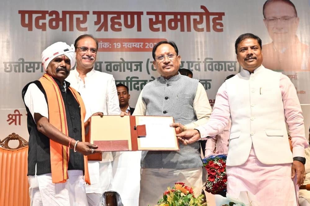 वनमंत्री केदार कश्यप ने कहा कि मुख्यमंत्री विष्णुदेव साय ने न केवल चरण पादुका योजना को पुनः प्रारंभ किया है, बल्कि विभिन्न योजनाओं के माध्यम से वनोपज संग्राहक परिवारों के जीवन स्तर में सुधार के लिए प्रभावी कदम लगातार उठाए जा रहे हैं।