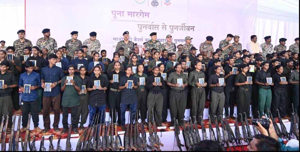 बस्तर रेंज में माओवादी हिंसा के खिलाफ चल रही “पूना मारगेम : पुनर्वास से पुनर्जीवन” पहल ने एक और बड़ी उपलब्धि दर्ज की है। जिले में मंगलवार को कुल 28 माओवादी कैडरों ने हथियार छोड़कर सामाजिक मुख्यधारा से जुड़ने का निर्णय लिया। इनमें 89 लाख रुपये के इनामी 19 महिला माओवादी भी शामिल हैं। नारायणपुर जिला प्रशासन, बस्तर पुलिस, सुरक्षा बलों व स्थानीय समाज के संयुक्त प्रयासों से हुआ यह पुनर्वास क्षेत्र में शांति और भरोसे के माहौल को मजबूत करता है।