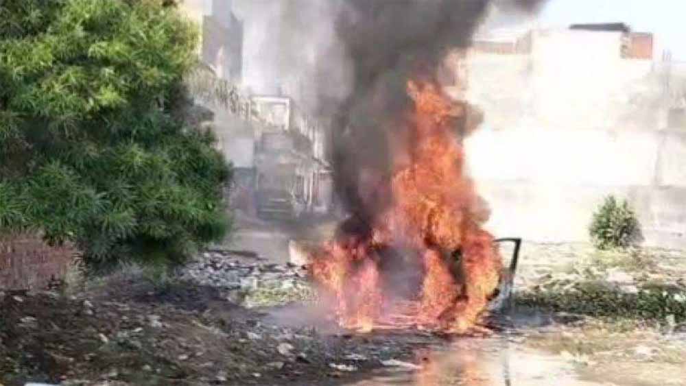 नेविगेशन में चूक, जानलेवा बनी ड्राइव—कार में लगी भीषण आग