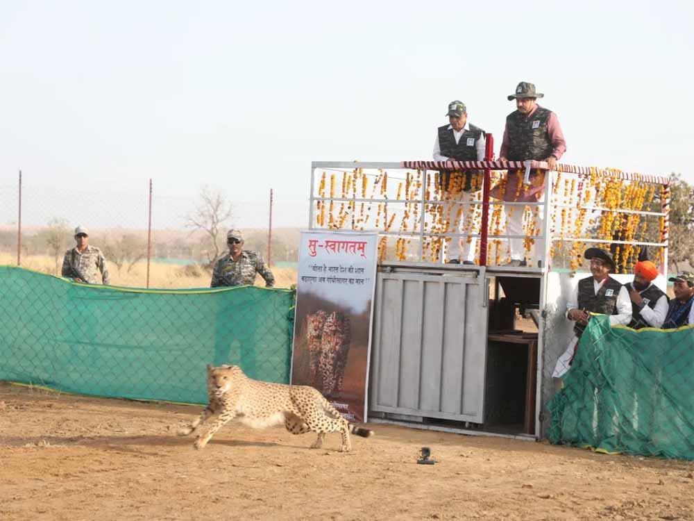 अंतर्राष्ट्रीय चीता दिवस पर मुख्यमंत्री मोहन यादव ने गुरुवार को कूनो नेशनल पार्क में बाड़े से तीन चीतों को खुले जंगल में रिलीज किया। इनमें दक्षिण अफ्रीका से आई मादा चीता वीरा और उसके दो शावक शामिल हैं। वीरा ने फरवरी 2025 में दो शावकों को जन्म दिया था, जो अब करीब नौ माह के हो चुके हैं। तीनों अब खुले जंगल में स्वतंत्र रूप से विचरण करेंगे। खुले जंगल में पहले 16 चीते थे, वीरा और उसके दो शावकों के जुड़ने से यह संख्या बढ़कर 19 हो गई है। वर्तमान में कूनो में कुल 29 चीते हैं। 8 वयस्क और 21 शावक। इसके अलावा मंदसौर-नीमच के गांधी सागर अभयारण्य में भी 3 चीते मौजूद हैं।