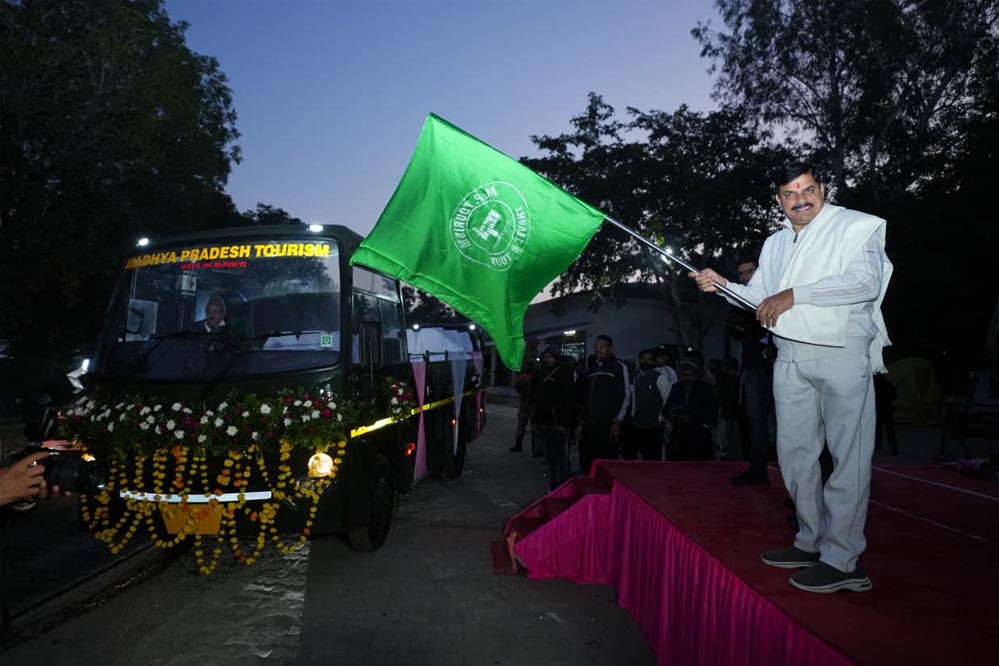 मुख्यमंत्री डॉ. मोहन यादव ने सोमवार सुबह पन्ना नेशनल पार्क के मडला गेट से 10 नई वीविंग कैंटर बसों को हरी झंडी दिखाकर रवाना किया। अब इन बसों के जरिए पर्यटक जंगल सफारी का रोमांचक अनुभव और अधिक सुविधाजनक तरीके से ले सकेंगे। मुख्यमंत्री डॉ. यादव के नेतृत्व में प्रदेश में पर्यटन की सुविधाओं में लगातार विस्तार किया जा रहा हैं।