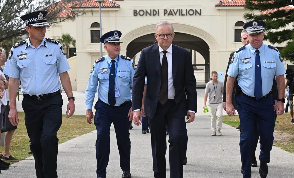 ऑस्ट्रेलियाई प्रधानमंत्री एंथनी अल्बनीज ने मंगलवार को कहा कि हमला इस्लामिक स्टेट की विचारधारा से प्रेरित लगता है। उन्होंने इसे नफरत की विचारधारा करार दिया, जो पिछले एक दशक से कुछ लोगों को उग्रवादी बनाने का काम कर रही है। पुलिस ने पुष्टि की है कि हमलावरों की कार में दो घरेलू स्तर पर बने इस्लामिक स्टेट के झंडे और इंप्रोवाइज्ड एक्सप्लोसिव डिवाइस (आईईडी) मिले हैं।