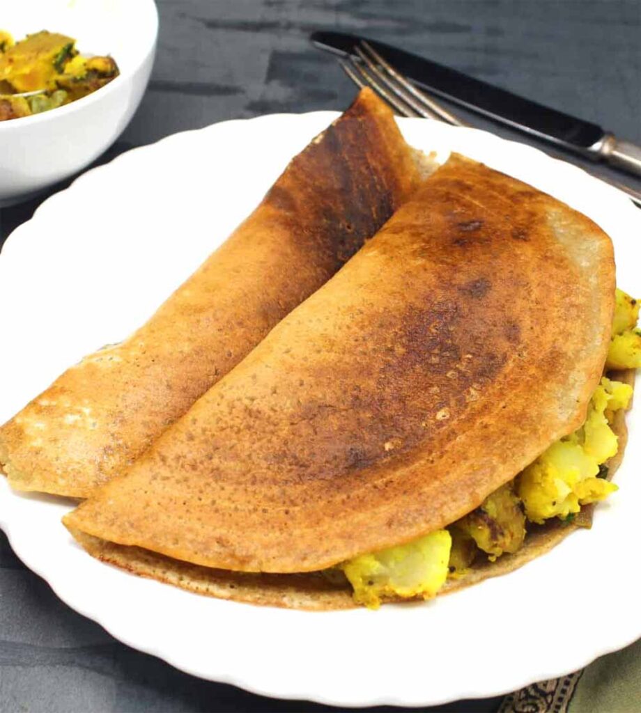 बीच में आलू मसाला रखकर डोसे की तरह मोड़ दें।