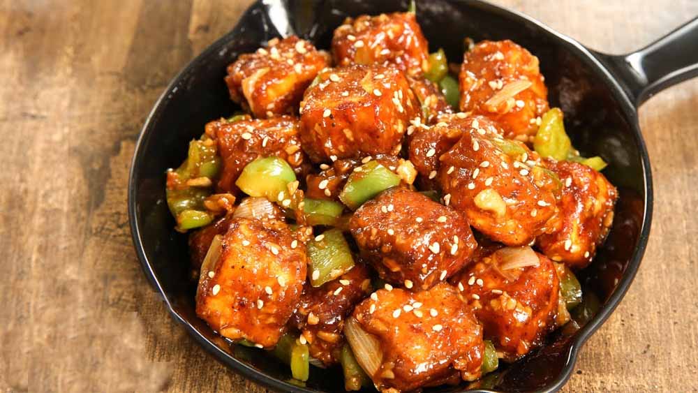 आपका गरमागरम और स्वादिष्ट क्रिस्पी पनीर तैयार है। इसे आप हरी चटनी या टोमैटो सॉस के साथ परोस सकते हैं।