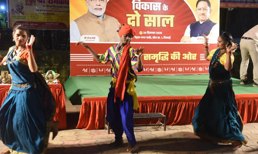 सेवा और विकास के दो वर्ष पूर्ण होने के उपलक्ष्य में जनसंपर्क विभाग द्वारा नेहरू नगर पार्क, जोन क्रमांक 1 भिलाई में एक दिवसीय विशेष कार्यक्रम का आयोजन किया गया। जिसमें बड़ी संख्या में स्थानीय नागरिकों, युवाओं एवं बच्चों ने उत्साहपूर्वक भाग लिया। कार्यक्रम में रेडियो जॉकी (आरजे) अनिमेश जैन एवं उनकी टीम ने रोचक गतिविधियों का संचालन किया, जिससे पूरे आयोजन में उत्साह और जीवंतता बनी रही।