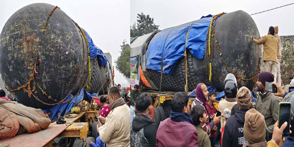 बिहार में 17 को होगी स्थापना, 33 फीट लंबा और 210 टन वजनी दुनिया का सबसे बड़ा शिवलिंग पहुंचा