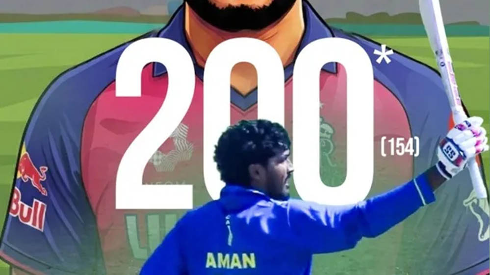 अमन ने 65 गेंदों में अर्धशतक और 108 गेंदों में शतक पूरा किया. इसके बाद सिर्फ 46 गेंदों में दोहरे शतक तक पहुंच गए. यह अमन राव का सीनियर क्रिकेट में पहला शतक भी है. टूर्नामेंट के शुरुआती दो मैचों में उन्होंने 39 और 13 रन बनाए थे, लेकिन तीसरे मुकाबले में उन्होंने इतिहास रच दिया.