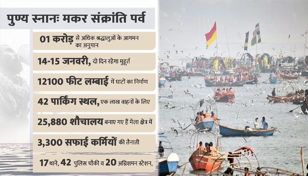 मकर संक्रांति स्नान पर्व के लिए तैयारी पूरी, 1 करोड़ से अधिक श्रद्धालुओं के आगमन का प्रशासन का अनुमान