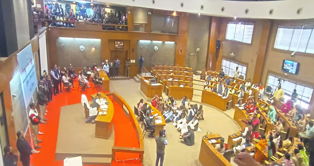 नगर निगम परिषद की बैठक में कांग्रेस पार्षदों ने पोस्टर लेकर प्रदर्शन किया और महापौर व एमआईसी के इस्तीफे की मांग की. भाजपा पार्षद देवेंद्र भार्गव भी विरोध में जैकेट पर कागज चस्पा कर पहुंचे. भाजपा के वरिष्ठ पार्षदों समेत कई सदस्यों ने विरोध जताया. इस दौरान भावुक होकर भाजपा पार्षद देवेंद्र भार्गव ने परिषद से इस्तीफ़ा देने की चेतावनी दी.
