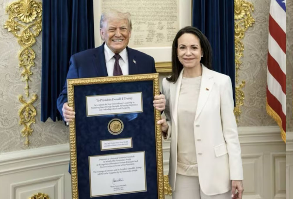 वेनेजुएला संकट के बीच मचाडो ने ट्रंप को भेंट किया नोबेल पुरस्कार, व्हाइट हाउस में हुई अहम मुलाकात