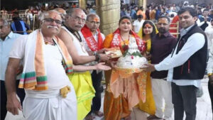 उज्जैन सोमवार को मध्य प्रदेश के उज्जैन जिले में श्री महाकालेश्वर मंदिर में एक भक्त ने बाबा महाकालेश्वर को 2...