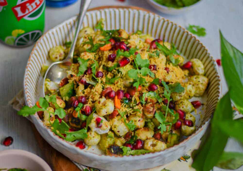 ऊपर से हरी चटनी, मीठी चटनी, नींबू का रस और चाट मसाला डालकर अच्छी तरह मिलाएं।