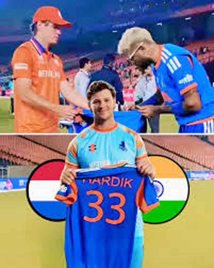अहमदाबाद के नरेंद्र मोदी स्टेडियम में भारत और नीदरलैंड्स के बीच खेले गए टी20 वर्ल्ड कप 2026 के मुकाबले के बाद एक बेहद भावुक पल देखने को मिला। भारतीय टीम के स्टार ऑलराउंडर हार्दिक पांड्या ने नीदरलैंड्स के स्टार ऑलराउंडर बास डी लीडे को अपनी साइन की हुई जर्सी उपहार में दी।