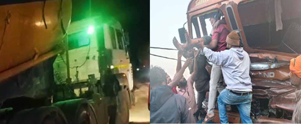तीन घंटे तक फंसा रहा, धार में ट्रक ड्राइवर ने कंटेनर को मारी टक्कर