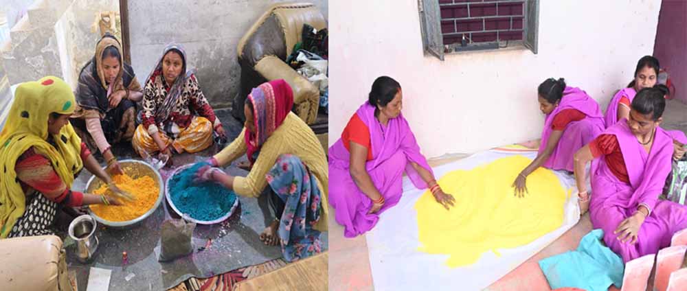 स्व सहायता समूह की महिलाएं बना रहीं प्राकृतिक गुलाल, प्राकृतिक रंगों से चमकेगी होली