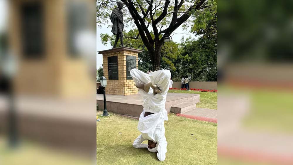 अपने बयानों और अनोखे अंदाज के लिए चर्चा में रहने वाले श्योपुर विधायक बाबूलाल जंडेल ने आज मध्य प्रदेश विधानसभा परिसर में हलचल मचा दी. खुद पर हुई पुलिसिया कार्रवाई को राजनीति से प्रेरित बताते हुए जंडेल ने गांधी प्रतिमा के सामने शीर्षासन कर अपना विरोध दर्ज कराया.