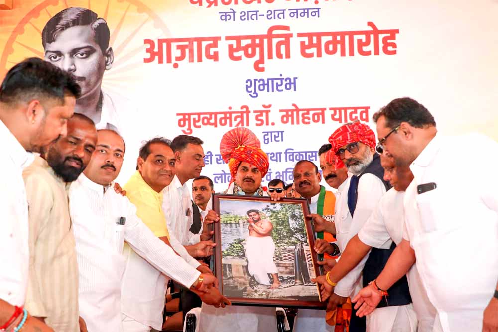 मुख्यमंत्री डॉ. मोहन यादव ने शहीद चंद्रशेखर आजाद के बलिदान दिवस पर आलीराजपुर स्थित उनकी जन्मस्थली चंद्रशेखर आजाद नगर (भाबरा) पहुंचकर उनकी प्रतिमा को नमन किया। मुख्यमंत्री डॉ. यादव ने कहा कि अमर शहीद चंद्रशेखर आजाद भारत की क्रांति का तेजस्वी स्वर थे। राज्य सरकार अमर बलिदानी और क्रांतिकारियों के जीवन से प्रेरणा लेकर गरीब, किसान, युवा और नारी (जीवायएएन) कल्याण के संकल्प के साथ आगे बढ़ रही है। प्रधानमंत्री  नरेन्द्र मोदी के मार्गदर्शन में गुजरात के साथ-साथ पड़ौसी मध्यप्रदेश के आलीराजपुर जिले का भी आर्थिक तंत्र बदला है। आलीराजपुर भील जनजाति की संस्कृति और स्वाभिमान की भूमि है। आज देश प्रधानमंत्री  मोदी के नेतृत्व में विश्व की चौथी सबसे बड़ी अर्थव्यवस्था बन चुका है। मुख्यमंत्री डॉ. यादव अमर शहीद चंद्रशेखर आजाद के बलिदान दिवस पर आलीराजपुर में आयोजित सभा को संबोधित कर रहे थे।