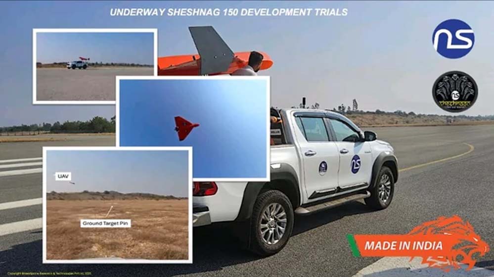 बेंगलुरु की कंपनी न्यूस्पेस रिसर्च टेक्नोलॉजीज (NRT) ने शेषनाग-150 नाम का लंबी दूरी का स्वार्म अटैक ड्रोन बनाया है. यह ड्रोन पूरी तरह स्वदेशी है. विकास परीक्षण में तेजी से आगे बढ़ रहा है. यह ड्रोन पहली बार करीब एक साल पहले उड़ा था. अब ऑपरेशन सिंदूर जैसी हाल की घटनाओं के बाद इसकी जरूरत और ज्यादा तेज हो गई है।