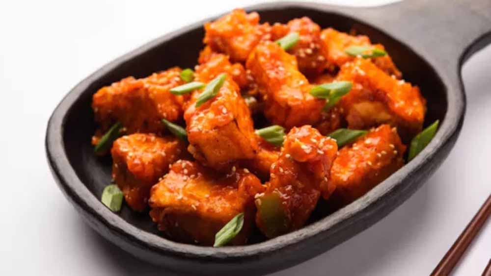 आपका गरमागरम और स्वादिष्ट क्रिस्पी पनीर तैयार है। इसे आप हरी चटनी या टोमैटो सॉस के साथ परोस सकते हैं।