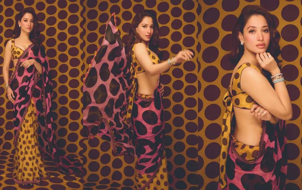 तमन्ना की पोल्का डॉट साड़ी में कमाल, ब्लाउज ने 70 के दशक के ग्लैमर को दिया नया अंदाज