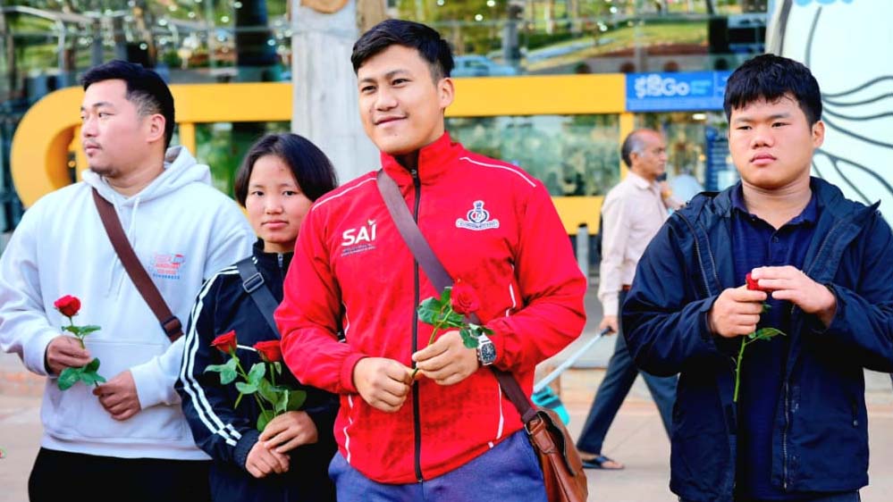 अरुणाचल के वेटलिफ्टरों का विमानतल पर रंगारंग स्वागत