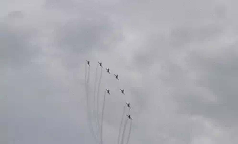 एयर शो के दौरान सूर्यकिरण टीम ने समन्वय और सटीकता के साथ कई हवाई करतब पेश किए। फाइटर जेट्स ने एक साथ उड़ान भरते हुए आकाश में अलग-अलग आकृतियां बनाई, जिसमें डायमंड फॉर्मेशन और अंग्रेजी अक्षर ‘A’ प्रमुख रहे। सबसे खास पल तब रहा जब जेट्स ने तिरंगा बनाकर देशभक्ति का संदेश दिया, जिसे देखकर दर्शकों ने उत्साह के साथ तालियां बजाईं।
