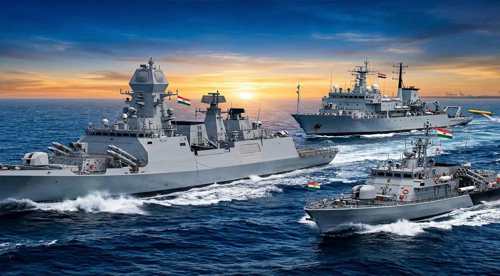 हिंद महासागर क्षेत्र में चीन की बढ़ती उपस्थिति के बीच भारत की समुद्री ताकत को एक बड़ा बढ़ावा मिला है। भारतीय नौसेना को सोमवार को कोलकाता में गार्डन रीच शिपबिल्डर्स एंड इंजीनियर्स लिमिटेड (GRSE) से एक ही दिन में तीन नए जहाज प्राप्त हुए हैं। इनमें दो युद्धपोत (एक स्टेल्थ फ्रिगेट सहित) और एक बड़ा सर्वेक्षण पोत शामिल हैं। इन तीनों पोतों के नाम दूनागिरी, अग्रेय और संशोधक हैं।