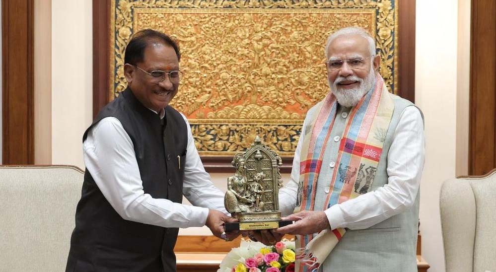 मुख्यमंत्री विष्णुदेव साय ने नई दिल्ली में प्रधानमंत्री नरेंद्र मोदी से मुलाकात के दौरान छत्तीसगढ़ की समृद्ध जनजातीय परंपरा और सांस्कृतिक पहचान को दर्शाती बेल मेटल से निर्मित ‘माता कौशल्या के राम’ की अद्वितीय कलाकृति भेंट की।