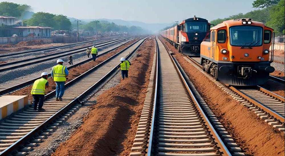 तकनीकी प्रगति: सागौर-धार खंड में ट्रैक बिछाने के लिए मशीन का उपयोग किया जा रहा है।