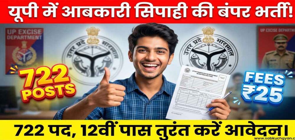यूपी में आबकारी कांस्टेबल के 722 पदों पर आवेदन शुरू, 12वीं पास युवाओं के लिए सुनहरा अवसर