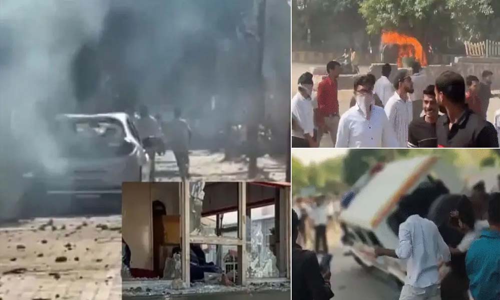 वाहनों में तोड़फोड़-आगजनी
