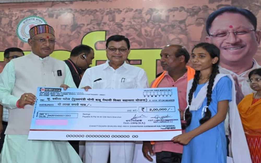 छत्तीसगढ़ श्रम विभाग द्वारा संचालित “मुख्यमंत्री नोनी बाबू मेधावी शिक्षा सहायता योजना” के तहत पंजीकृत निर्माण श्रमिकों के बच्चों को उच्च शिक्षा के लिए प्रोत्साहन राशि प्रदान की जा रही है। योजना का उद्देश्य श्रमिक परिवारों के बच्चों को पाठ्यक्रमों तक पढ़ाई करने वाले है। वहीं, शिक्षा के प्रति प्रेरित करना और उनके उज्ज्वल भविष्य का निर्माण करना है।