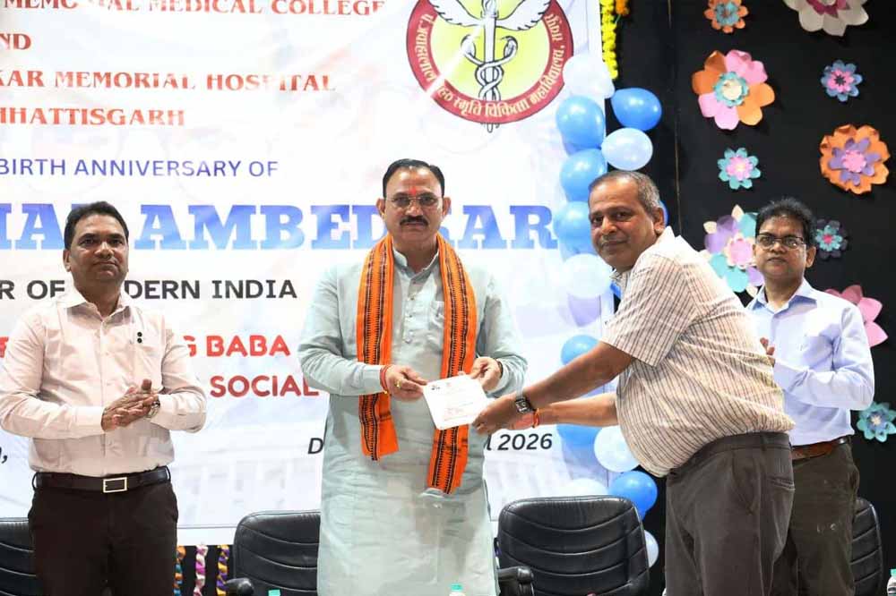 पंडित जवाहरलाल नेहरू स्मृति चिकित्सा महाविद्यालय एवं डॉ. भीमराव अम्बेडकर स्मृति चिकित्सालय, रायपुर में आज संविधान निर्माता डॉ. भीमराव अम्बेडकर की जयंती हर्षोल्लास एवं गरिमामय वातावरण में मनाई गई। इस अवसर पर आयोजित कार्यक्रम में मुख्य अतिथि के रूप में स्वास्थ्य मंत्री श्याम बिहारी जायसवाल उपस्थित रहे।