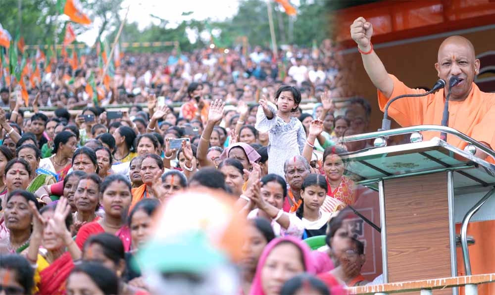 मुख्यमंत्री योगी आदित्यनाथ शनिवार को पश्चिम बंगाल के चुनावी रण में फिर गरजे। माथाभांगा व धुपगुड़ी विधानसभा क्षेत्रों में आयोजित जनसभाओं को संबोधित करते हुए उन्होंने नारी शक्ति वंदन संशोधन विधेयक पर लोकसभा में विपक्षी दलों के रुख की भर्त्सना की। मुख्यमंत्री ने कहा कि बांग्लादेशी घुसपैठियों के पैरोकारों ने यह संशोधन विधेयक पास नहीं होने दिया। यह देश की आधी आबादी का अपमान है, माता-बहनें इसे किसी रूप में बर्दाश्त नहीं करेंगी। सीएम योगी ने पश्चिम बंगाल की मौजूदा अराजक स्थिति के लिए तृणमूल कांग्रेस (टीएमसी) को दोषी ठहराते हुए ऐलान किया कि ममता बनर्जी सिंहासन खाली करो, बीजेपी आ रही है। अब बंगालवासियों को घबराने की आवश्यकता नहीं है।