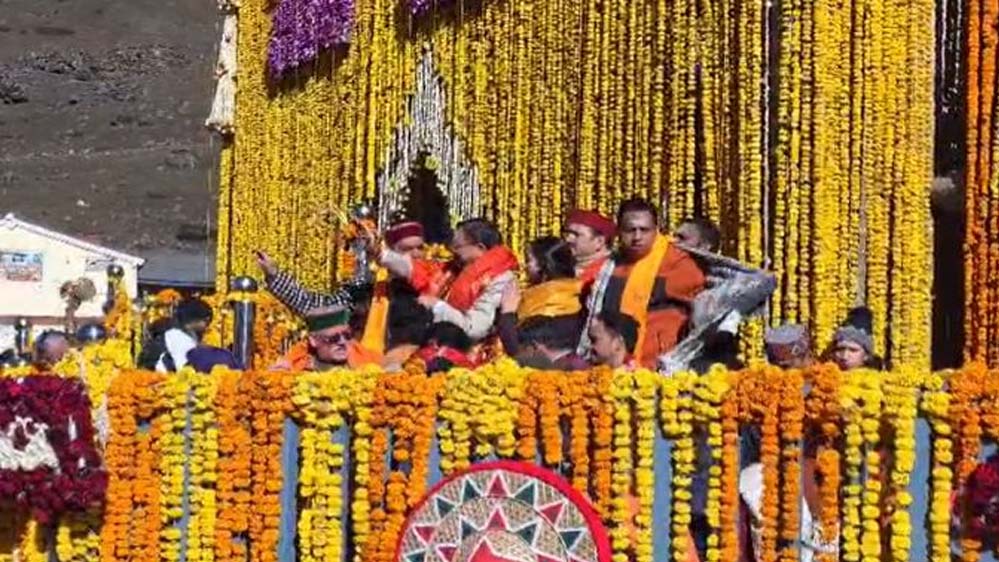 केदारनाथ धाम के कपाट खुलते ही पूरा धाम हर-हर महादेव के जयघोष से गूंज उठा। इसी के साथ केदारनाथ यात्रा का शुभारंभ हो गया। कपाटोद्घाटन के सैकड़ों श्रद्धालु साक्षी बने। बाबा केदार के धाम को को करीब 51 कुंतल फूलों से भव्य रूप से सजाया गया है, जिसने श्रद्धालुओं को मंत्रमुग्ध कर दिया। देश-विदेश से हजारों श्रद्धालु पहले ही धाम पहुंच चुके थे और कपाट खुलने के इस अद्भुत क्षण साक्षी बने। बाबा के कपाट खुलने से हेलिकॉप्टर से पुष्प वर्षा की गई।विश्व प्रसिद्ध श्री केदारनाथ धाम के कपाट बुधवार प्रातः शुभ मुहूर्त में ठीक 8 बजे वैदिक मंत्रोच्चार एवं विधि-विधान के साथ श्रद्धालुओं के दर्शनार्थ खोल दिए गए। इसी के साथ केदारनाथ यात्रा का विधिवत शुभारंभ हो गया। कपाट खुलने के इस पावन अवसर पर प्रदेश के मुख्यमंत्री पुष्कर सिंह धामी भी उपस्थित रहे। इस दौरान हजारों श्रद्धालु इस ऐतिहासिक क्षण के साक्षी बने और पूरा धाम भक्तिमय वातावरण से गुंजायमान हो उठा।