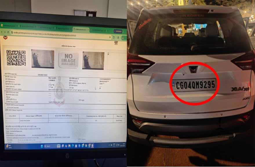 ट्रैफिक नियमों के पालन के लिए लागू किया गया ई-चालान सिस्टम अब खुद अपनी विश्वसनीयता खोता नजर आ रहा है. ताजा मामला उस गंभीर तकनीकी खामी को उजागर करता है. एक ही रजिस्ट्रेशन नंबर CG 04 QM 9295 दो अलग-अलग वाहन, जिनमें एक टू-व्हीलर और एक SUV कार पर दर्ज पाया गया.