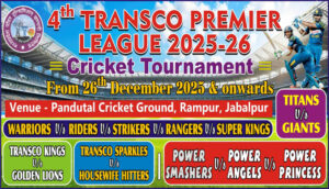 ट्रांसको प्रीमियर क्रिकेट लीग 26 दिसम्बर से जबलपुर एम.पी. ट्रांसको (मध्यप्रदेश पावर ट्रांसमिशन कंपनी) मुख्यालय, जबलपुर में अंतरविभागीय वार्षिक खेलकूद...