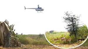 हेलीकॉप्टर और बोमा से कृष्ण मृगों और नीलगायों को पकड़ने का अभियान जारी